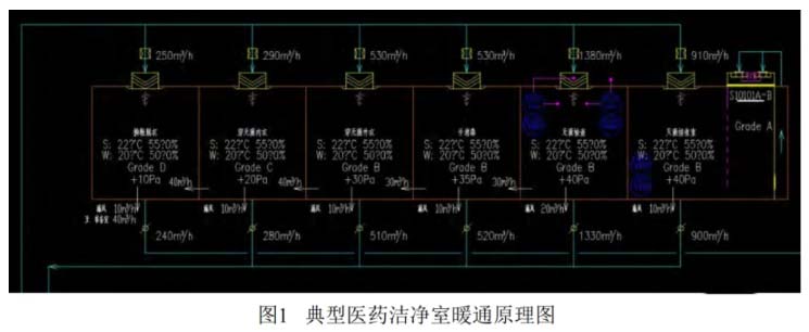 作为药品生产质量控制系统的重要组成部分,药厂暖通空调系统主要通过对药品生产环境的空气温度、湿度、悬浮粒子、微生物等的控制和监测,确保环境参数符合药品质量的要求,避免空气污染和交叉污染的发生,同时为操作人员提供舒适的环境。另外药厂暖通空调系统还可起到减少和防止药品在生产过程中对作业人员造成的不利影响,并且保护周围的环境。而对于制药工业,一个清洁安全的空间环境则是空调系统设计中必须考虑的关键因素。