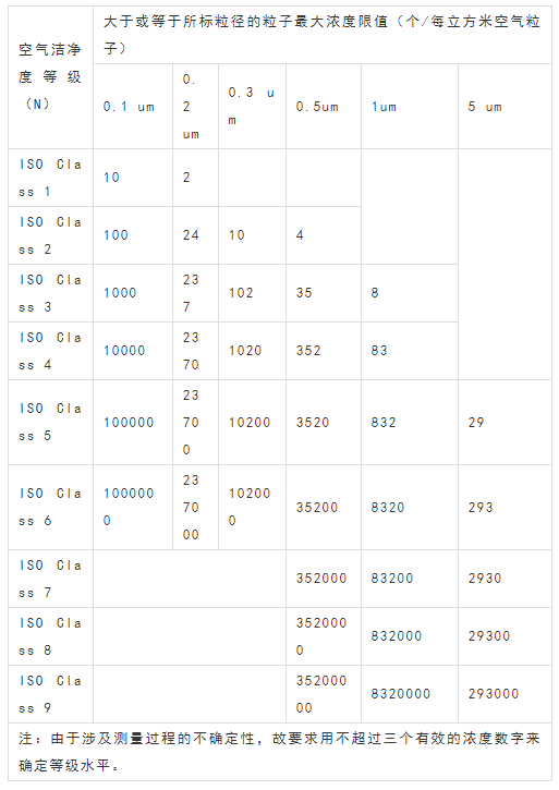 1.4 对空气洁净度等级标准 空气洁净度划分为九个等级,如表1-1所示。
